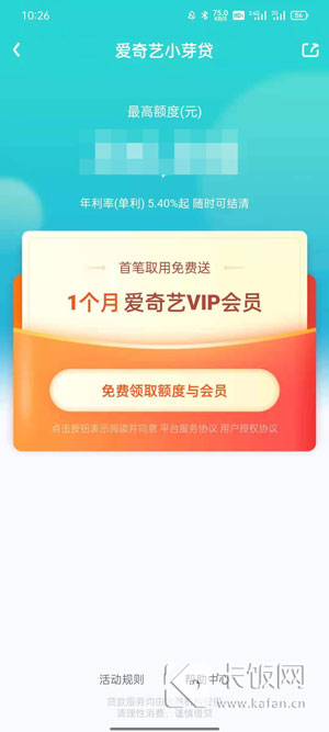4、点击按钮获得额度,并完成借款,即可获得会员。