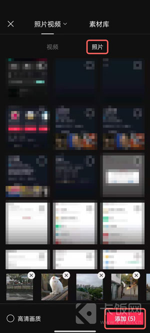 3、在选择照片视频时,选择【照片】,然后选中需要制作成视频的照片,点击右下角的【添加】;