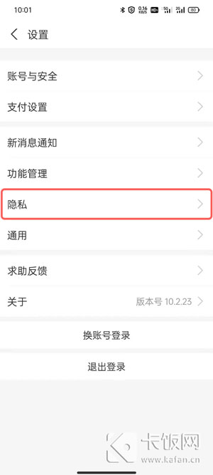 3、点击【隐私】设置,进入管理账号隐私服务;
