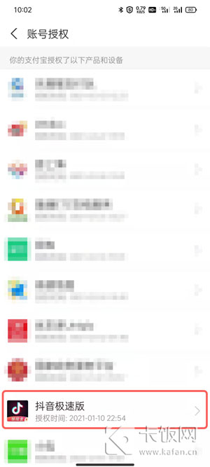 5、最后在账号授权列表中,找到并点击【抖音极速版】,点击进入;