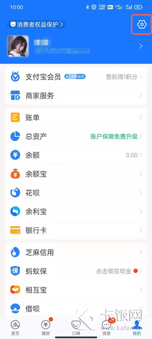 2、打开手机支付宝,登录抖音极速版绑定的账号,在【我的】点击右上角【设置】;