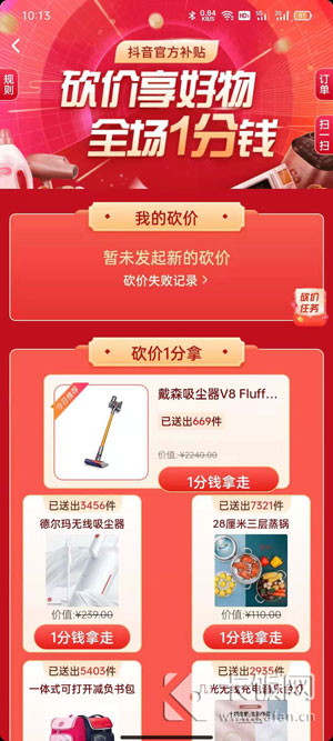 5、通过好友的链接分享、二维码分享也可以进入抖音官方补贴一分购活动。