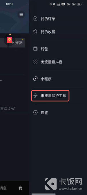 2、在菜单中选择【未成年保护工具】一项,进入开启儿童模式;