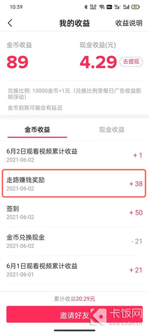 5、每天自动将走路赚到的金币领取,可在金币收益中看到走路赚取的金币奖励。