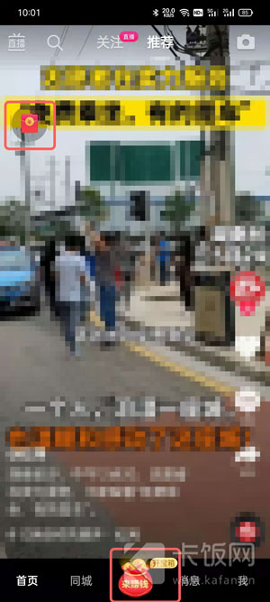 1、打开抖音极速版app,登录自己的账号后,点击下方的【来赚钱】,或者屏幕上的【红包】;