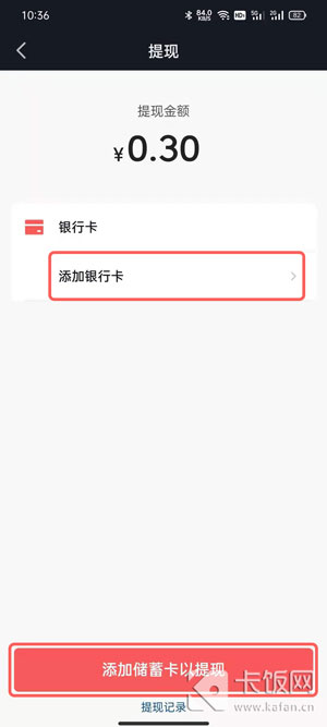 5、如果绑定了银行卡将直接进入提现页面,如果没有则需要先绑定银行卡再进行提现。