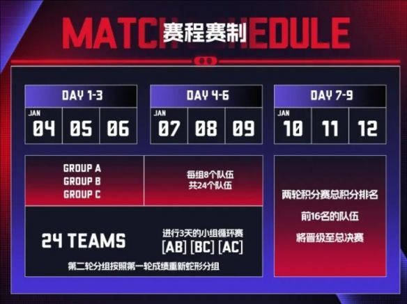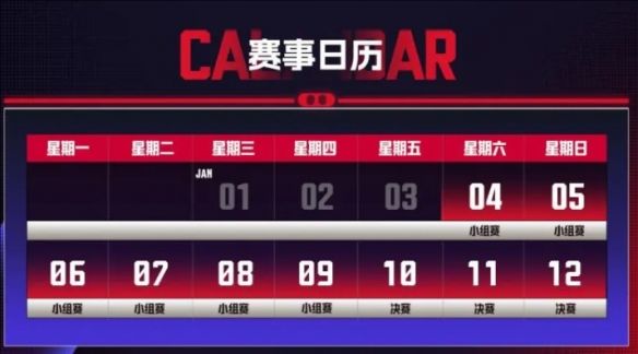 1、比赛2025年1月4日至12日,4日-9日小组赛。
