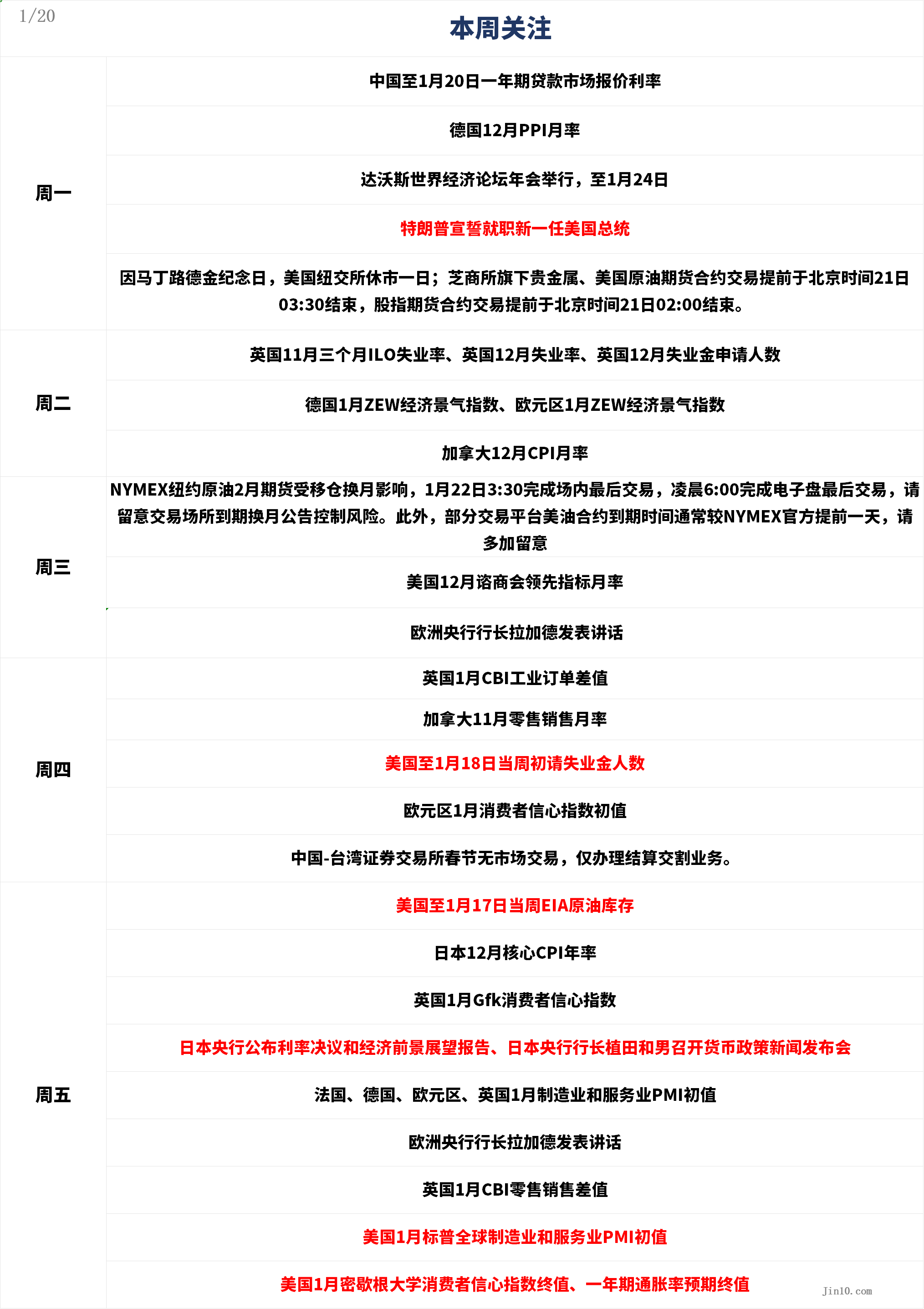 重要事件:特朗普就职典礼全球瞩目,黄金多头的好日子在后头?