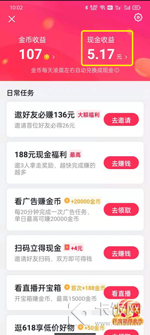 1、在抖音极速版app中,点击下方的【来赚钱】,或者屏幕中的【红包】进入赚钱页面;
