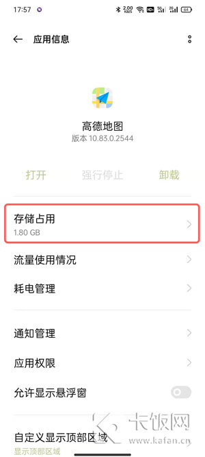2、进入高德地图详细信息页面后,点击【存储占用】一项;