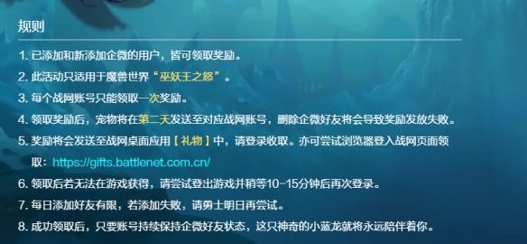 2、我们需要通过添加魔兽世界官方的企业微信的方式来获得领取这个宠物。