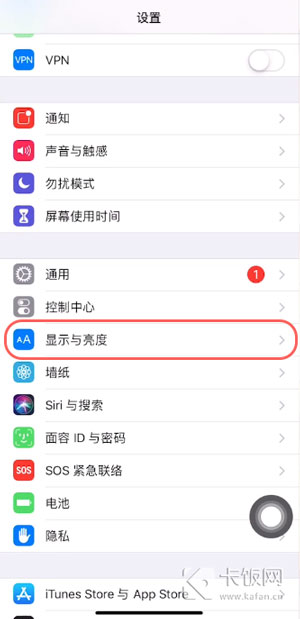 7、找到设置中的【显示与亮度】设置,点击进入修改;