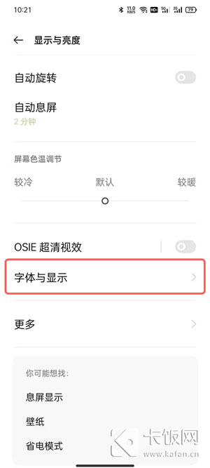 3、其他手机都可以通过【显示】或者【显示与亮度】,找到【字体与显示】设置;