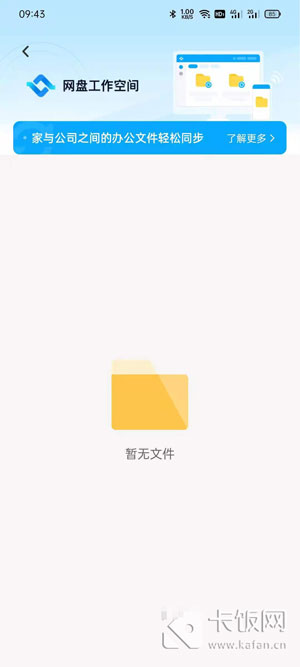 3、进入网盘工作空间后,可以看到由其他设备上传的文件,目前手机端暂不支持上传文件;