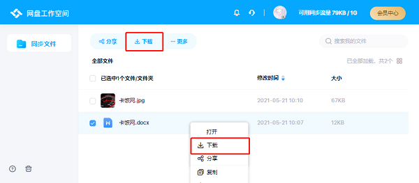 在客户端、网页版想要下载文件,可直接右击需要下载的文件选择下载即可,也可以通过一些操作按钮完成下载;