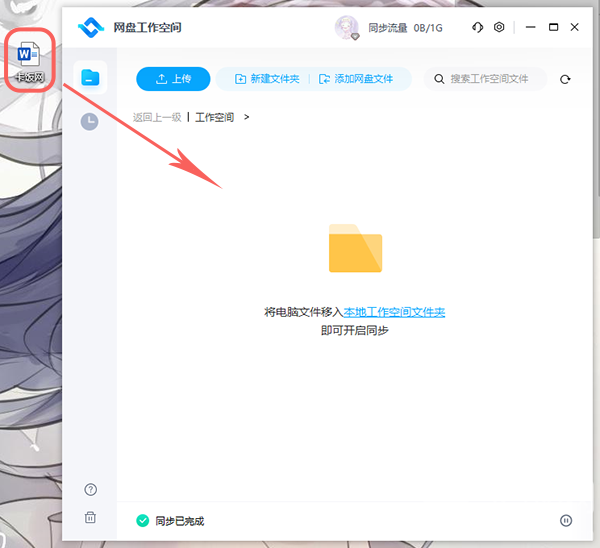 电脑端可以直接上传本地文件,将电脑桌面、文件资源管理器中的文件拖拽至工作空间即可上传,或直接点击“上传”按钮上传文件,同时也可以直接上传网盘中的文件;