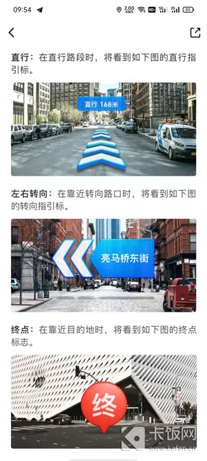 8、最后根据实景导航中的执行、左右转向、终点等标志到达您需要前往的目的地。