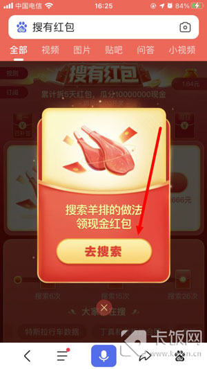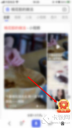 6、搜索并观看5秒之后,点击右下角的【红包】图标可返回再次搜索其他内容来领取红包;