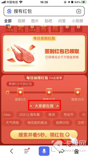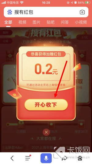 7、除了搜索红包之外,还有加赠红包,在每日24点前累计搜索6次、15次、26次,在活动页面可点击获得加赠红包;