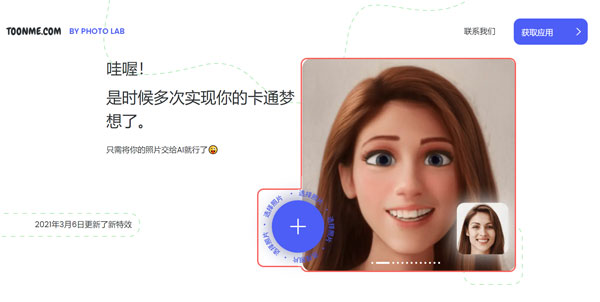 7、如果使用的是网页版toonme,进入网页后左右滑动选择需要使用的滤镜,点击【 】选择照片;