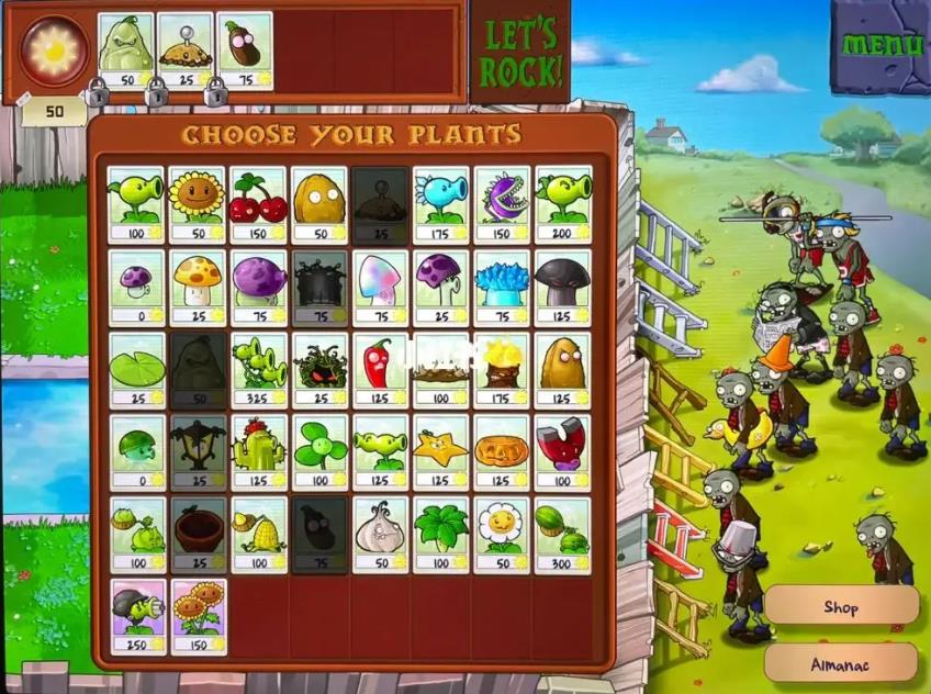 寒冰射手(Ice-shroom)/土豆雷(Potato Mine):用于应对紧急情况,寒冰射手能够冻结所有僵尸, 而土豆雷则可以消灭前期的僵尸。