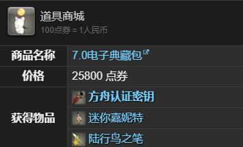 道具商城中花费25800点券购买【7.0电子典藏包】获得