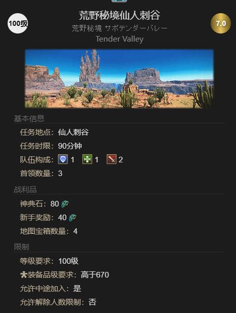 2、做完后即可挑战100级副本【荒野秘境仙人刺谷】;