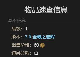 物品基本信息: