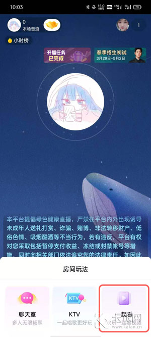 5、随后通过语音直播间开启一起看视频功能即可,点击这里查看详细开启教程。