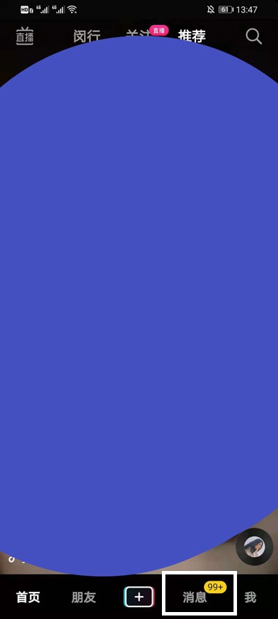 1、打开抖音进入到首页,然后点击下方的【消息】进入;