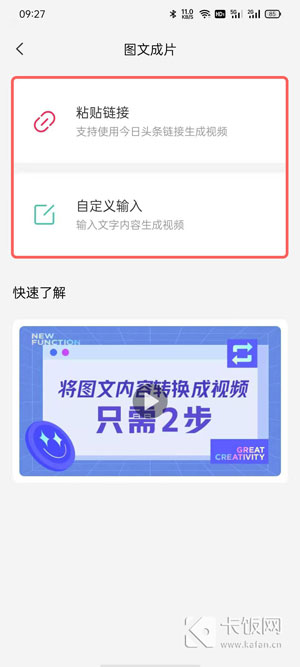 2、可以通过使用文章链接提取文字生成视频,也可以选择自定义输入生成视频;