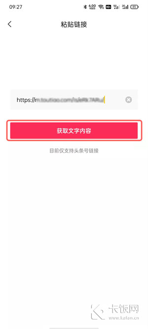 3、粘贴链接:在输入框中粘贴需要提取文字的链接(目前仅支持今日头条链接),点击【获取文字内容】;