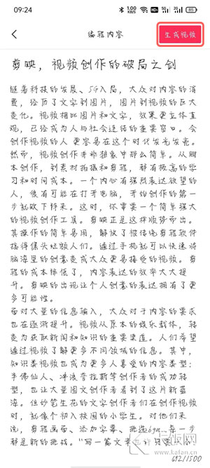 4、等待文字提取完成后,可进行一些文本编辑操作,点击右上角的【生成视频】;