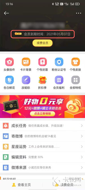 9、进入微博会员页面,可查看到自己的会员到期时间。