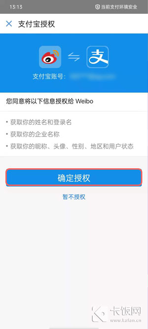 5、然后继续跳转到支付宝授权页面,点击【确定授权】;