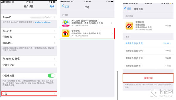 打开苹果手机的【设置】——>最上方的【账户】——>选择【iTunes Store 与 APP Store】——>点击上方的【Apple ID】——>选择【查看 Apple ID】——>点击最下方的【订阅】——>选择对应的微博订阅服务——>点击【取消订阅】即可;