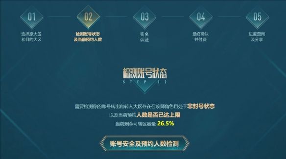 6、之后进入第二步检测账号状态,检测成功后,进行实名认证等待转区进度即可。