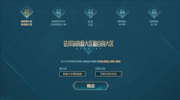 5、进入转区页面按步骤先选择好要转到哪个区。