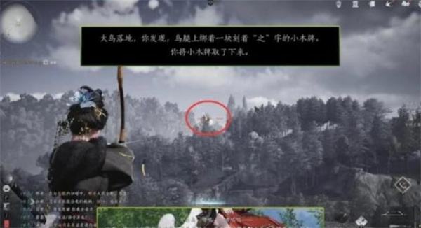 之字小木牌想要获取的时候,玩家还是来到北竹林的旧居周围。这时候玩家需要射落飞的最高的鸟,之所以这样做是为了考验玩家的远程攻击技能。玩家如果能够成功的射落飞的最高的鸟,然后直接到鸟掉落的附近搜索,就能够找到之字小木牌。