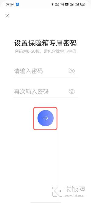 5、通过验证后,设置一串8-20位的保险箱专属密码,需要包含数字与字母;