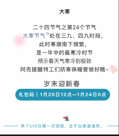 弹壳特攻队兑换码2025大寒:岁末迎新春