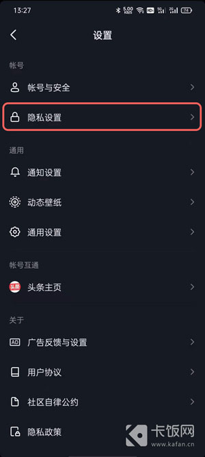 ④、点击【隐私设置】进入管理个人账户的隐私权限;