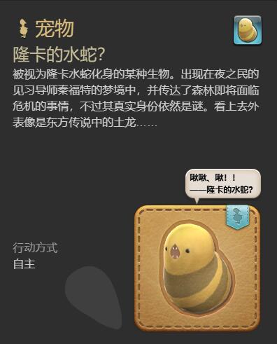 最终幻想14水晶世界隆卡的水蛇宠物获取攻略: