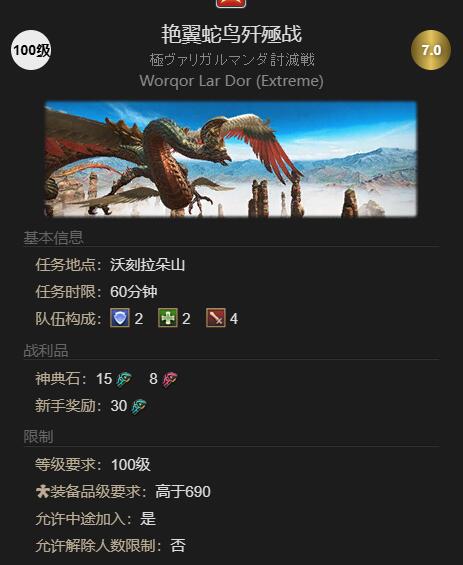 1、完成前置任务【在图拉尔中心吟诗之人】后才可以挑战【艳翼蛇鸟歼殛战】;