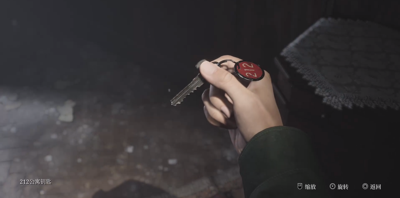 使用走廊钥匙进入二楼的213房间,然后走缝隙进入217房间去拿手枪,拿了手枪之后回到213房间就能拿到212公寓钥匙了。