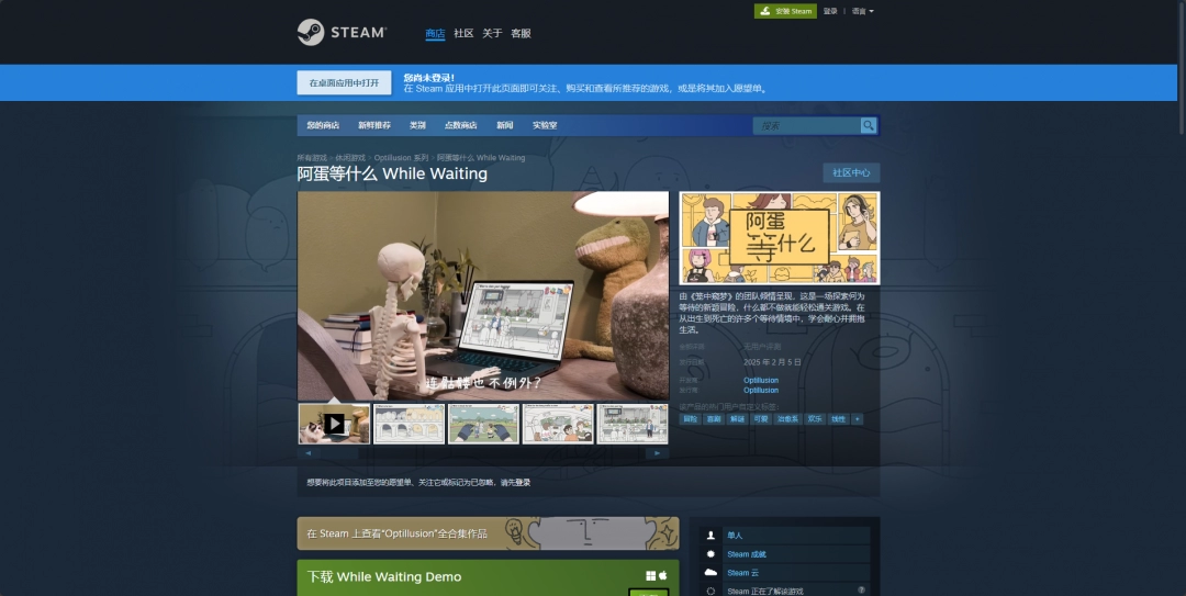 Steam平台购买链接:https://store.steampowered.com/app/2449160/_While_Waiting/。