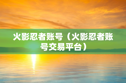 火影忍者账号(火影忍者账号交易平台)
