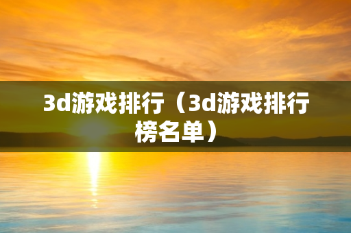 3D游戏排行:极致视觉体验与游戏魅力的结合