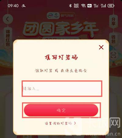 3.随后在输入框中输入或者粘贴灯笼码,点击【确定】按钮,确定使用该灯笼码;