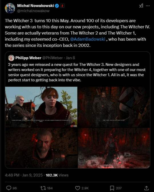 在此之前,担任《巫师4》叙事设计师的Philipp Weber在社交媒体平台上分享了一项信息,透露CDPR采用了“资深带新手”的开发模式,这一消息迅速在玩家群体中引发了热烈讨论。他解释道:“两年前,我们为《巫师3》增添了一项新任务,该任务是在资深任务设计师的悉心指导下,由新加入的设计师和编剧团队共同完成的。这种合作模式,无疑为我们的新团队成员积累了宝贵的《巫师4》开发经验。”
